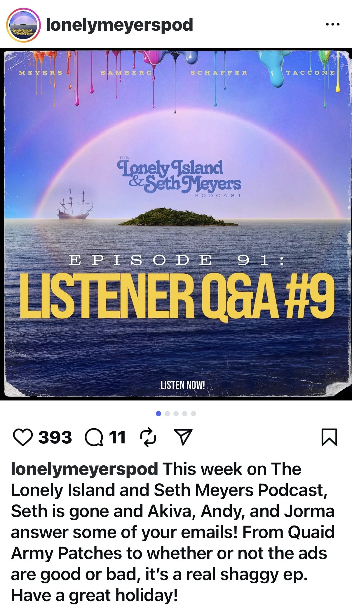My work is on The Lonely Island and Seth Meyers Podcast!!!!